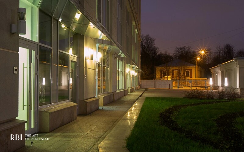 Бизнес-центр «Базель» занимает первые три этажа сданного и заселенного элитного жилого комплекса «Александрия» (Новгородская, д. 23).